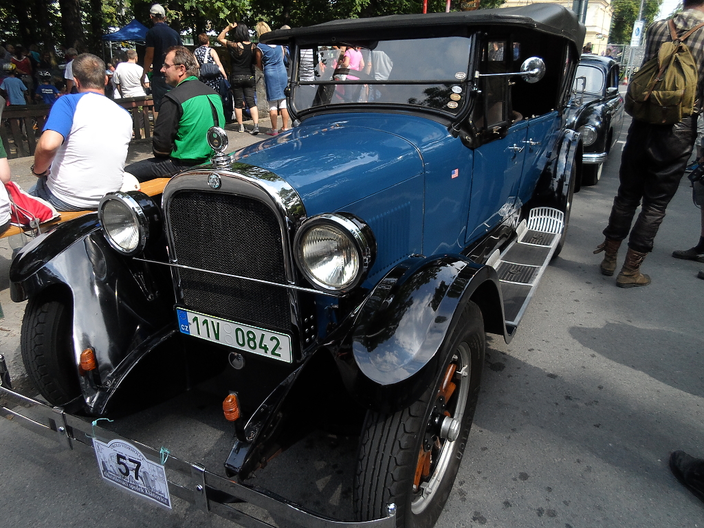 V sobotu 23.7. 2016 se uskutečnil další, už 17. ročník orientační jízdy historických vozidel Okolo Vidrholce. Tuto velmi příjemnou a dobře zorganizovanou akci pořádá Okrašlovací spolek Klánovice. Letošní trať měřila 37 kilometrů. Vyjeli jsme - jako obvykle - na Újezd nad Lesy a přes Koloděje pokračovali na tradiční místo - statek ve Škvorci. Historická část zámku a statku už je moc pěkně zrekonstruovaná a my měli své dočasné parkoviště na svažitém rozlehlém dvoře, kde jsme odpovídali na dotazy a plnili úkol obratnosti. Ukázalo se, že hod mokrou žínkou na cíl je komplikovaná disciplína. Pokračovali jsme na Nové Jirny k pumpě, kde byl další okruh otázek, a pak již krásnou rekreační Slavětínskou ulicí v Klánovicích ke trati a do cíle. Na startu nás odmávnul ve své uniformě pilot RAF a v cíli již tentýž startér převlečený za prvorepublikového lázeňského šviháka nám kladl záludnou otázku, zda si myslíme, že jsme již v cíli v Klánovicích. A nebyli jsme, on totiž Hotel Smolík (postavený v roce 1932) leží ještě v katastru Újezdu nad Lesy! Vyhráli všichni, kdo se zúčastnili, a kdo podpořili konzumací Chráněnou dílnu Nadačního fondu Slunce pro všechny. Pečou vynikající koláče a štrůdly! Za rok na shledanou! (7/16)